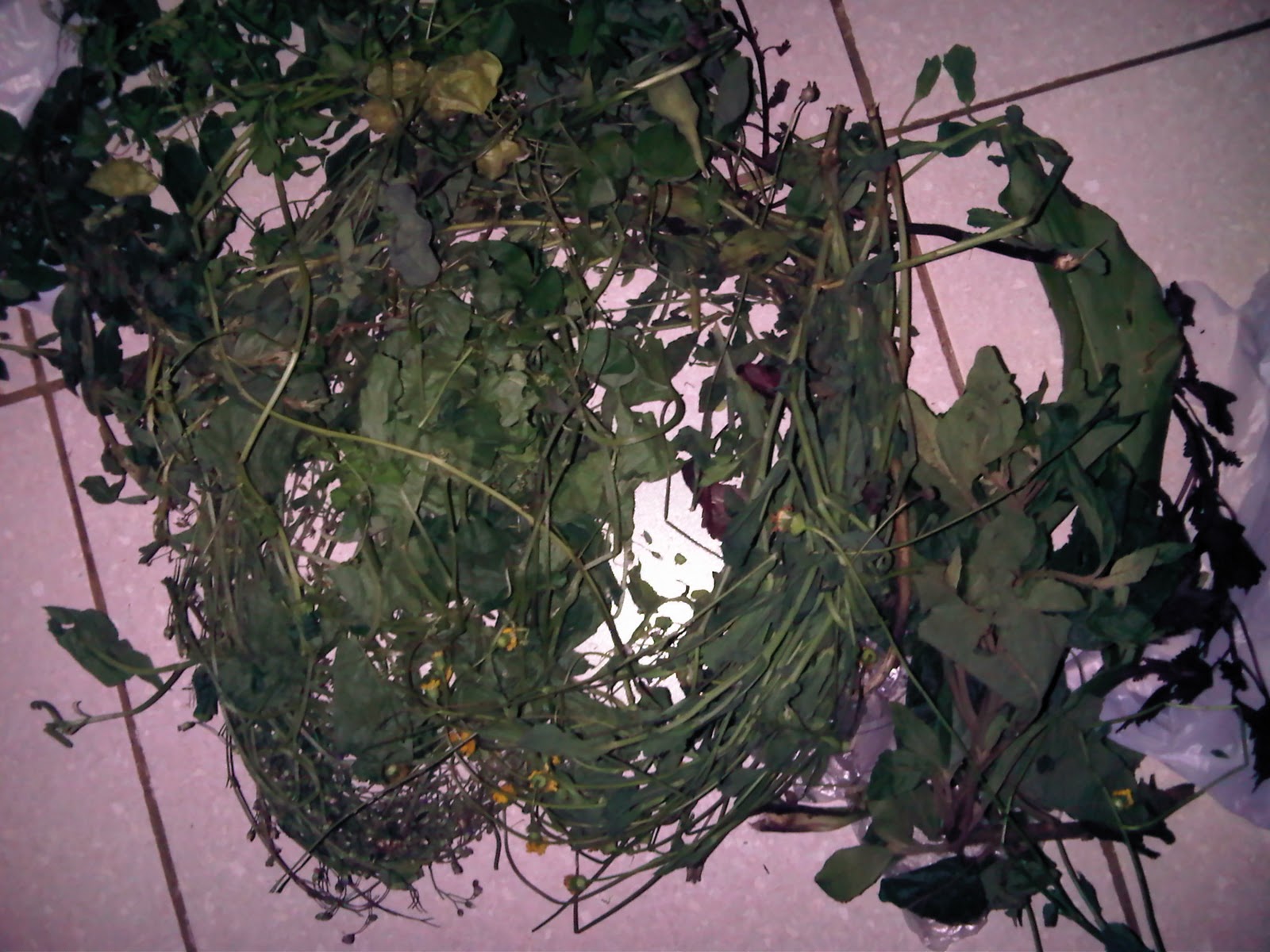 Three quarters of the leaves were for energy, wading off dizziness, increasing blood levels and making the tummy a perfect trampoline for the baby. I was instructed to soak each type of leaf in a basin of cold water and after taking a normal shower, to wash in the leaves.